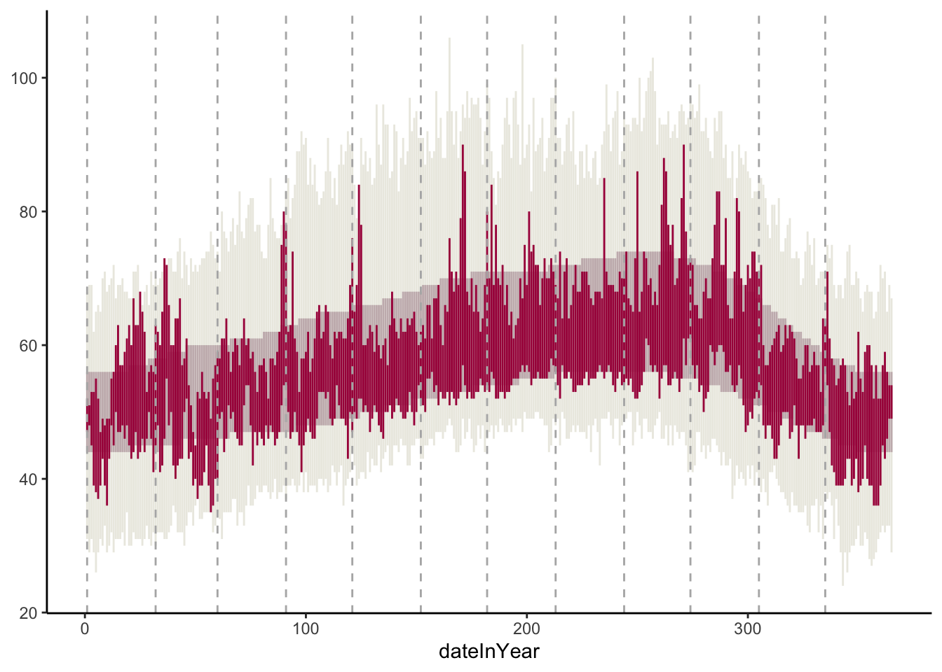 aes(x = dateInYear, ymin = NormalLow, ymax = NormalHigh),