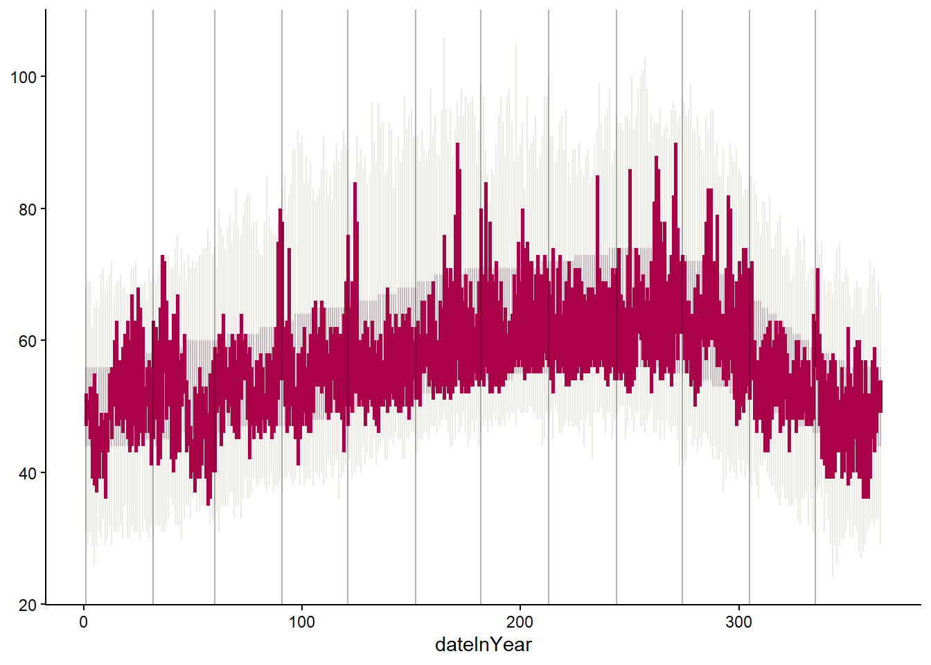 P <- ggplot(weather, aes(x = dateInYear)) +