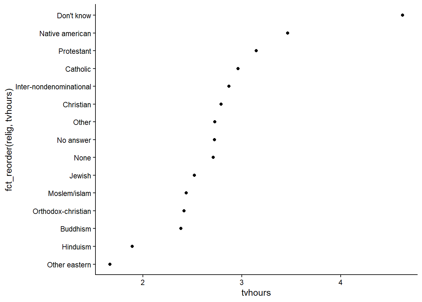 Reordering the levels of a factor can be useful in plotting when categories would benefit from being sorted in a particular way: